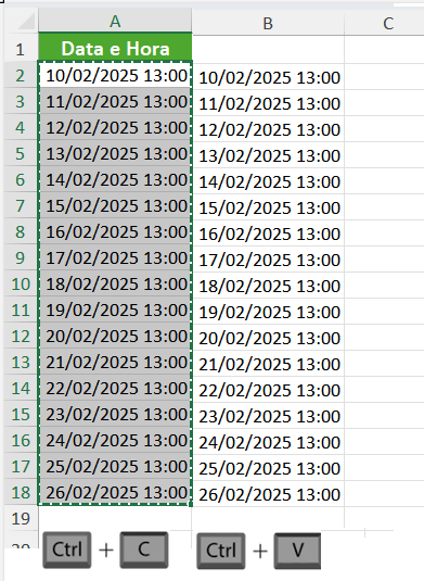 2. Copie os dados (Ctrl + C) e cole-os na coluna ao lado (Ctrl + V).