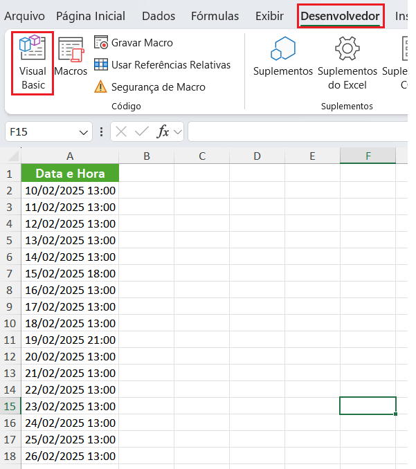 Para automatizar ainda mais a tarefa de separar a data e hora no Excel, podemos usar um código VBA que faça esta separação de maneira ágil e prática. Veja abaixo o passo a passo:
