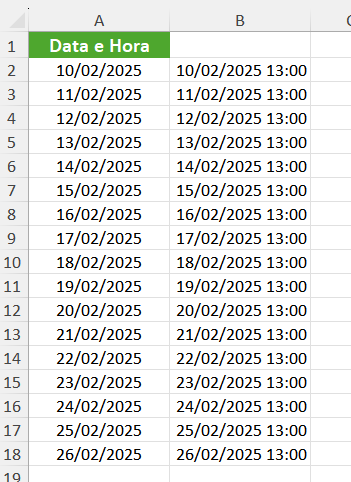 1. Formatando a coluna B para exibir apenas a data