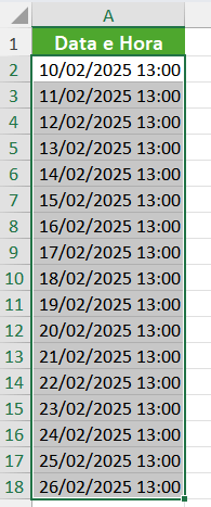 Agora, a coluna mostrará apenas as datas, ocultando as horas