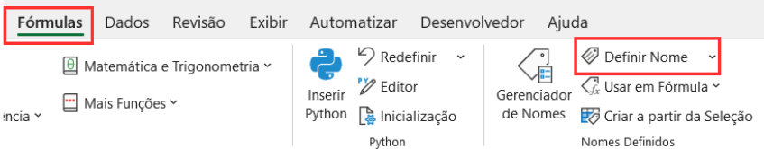 Acessando o comando Definir Nome na guia Fórmulas