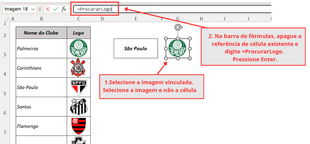 • A imagem não muda! Verifique se o nome definido na fórmula (=ProcurarLogo) foi digitado corretamente na barra de fórmulas da imagem.